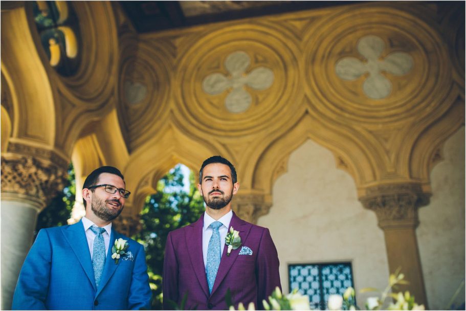 Nel frattempo Peter, elegante ma rilassato, sorseggiava un prosecco con gli amici. Il suo completo, impreziosito da un tocco di colore non convenzionale, raccontava tutta la sua originalità. Isola del Garda si svegliava lentamente, pronta a diventare il palcoscenico perfetto di un amore sincero e vibrante.