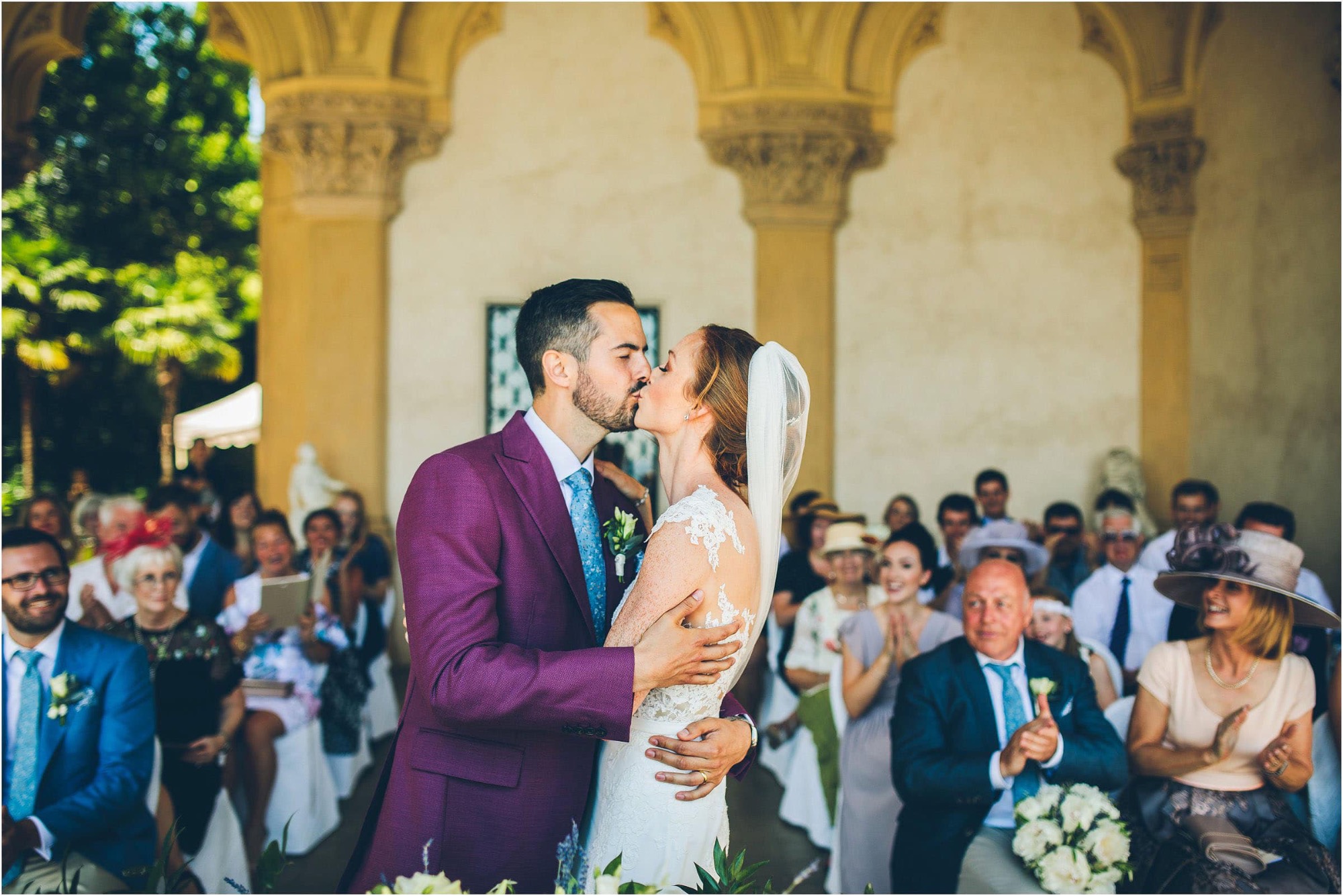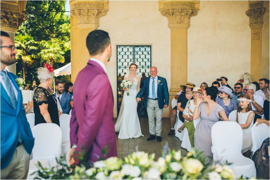 La cerimonia vista lago si è svolta sulla terrazza della villa, incorniciata da cipressi e colonne storiche. Nessuna rigidità, solo emozione pura. Ho catturato ogni sguardo, ogni sorriso trattenuto, ogni lacrima di gioia. Il “Sì” è risuonato dolce e potente, accompagnato dal fragoroso applauso degli invitati.