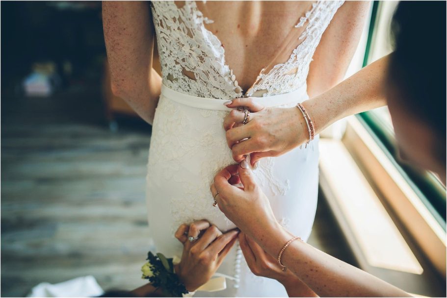 La mattina si è aperta con un’energia travolgente. Chloe, con la sua risata contagiosa, leggeva l’ultima lettera di Peter, un piccolo rituale pieno di emozione. Il suo abito sposa in pizzo, semplice e raffinato, rispecchiava perfettamente la sua personalità: autentica e luminosa. Attorno a lei, amiche e familiari trasformavano la stanza in un turbine di sorrisi e piccoli gesti d’affetto.