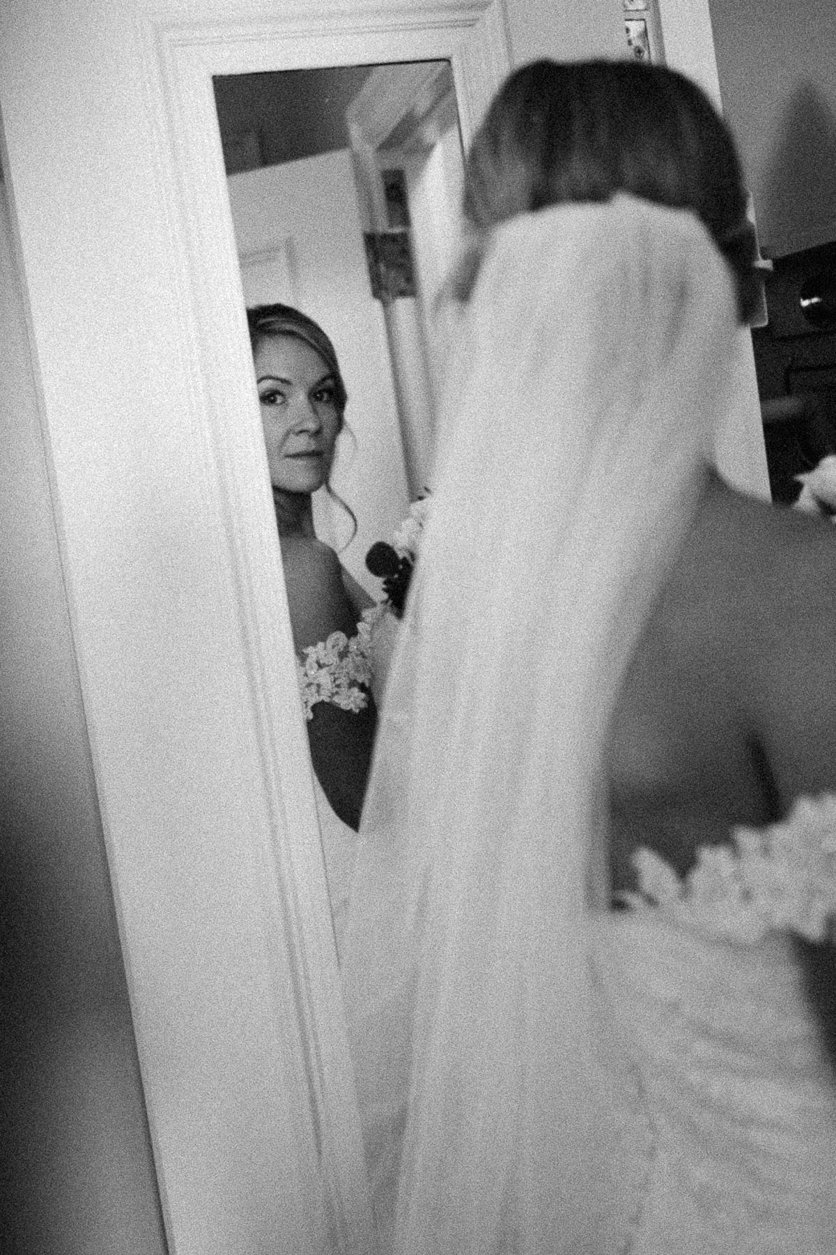 La cerimonia è stata raccolta, ma intensa. La luce morbida e diffusa dell’Inghilterra ha avvolto ogni gesto, trasformando il rito in una scena cinematografica. Ho giocato con le ombre, con la grana e con i riflessi per evocare la suggestione della fotografia analogica, raccontando le emozioni più sincere senza filtri né artifici. Ogni scatto, dallo scambio degli anelli al primo abbraccio, è stato costruito con l’attenzione alla composizione tipica della fotografia di moda, ma trattato con la delicatezza e la spontaneità del reportage.